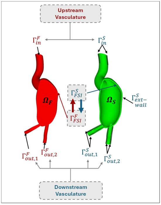 The fluid and solid domains of the AAA models with all the boundaries. Adapted from [] under the terms of the CC BY 4.0 license.