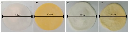 Hydrogel thickness was measured in millimeters (mm) using a digital screw gauge (Haidian District, Beijing, China) with 0–25 mm/0.01 mm resolution range. Five arbitrary measurements of the hydrogel’s surface, including center, surroundings, and remaining positions, were performed, and the arithmetic mean was computed.