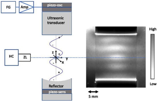 - Bücks, K.; Müller, H. Über einige Beobachtungen an schwingenden Piezoquarzen und ihrem Schallfeld. Z. Für Physik. 1933, 84, 75–86. [Google Scholar] [CrossRef]