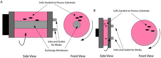 Varieties of RWV bioreactors. (A) Slow-turning lateral vessel (STLV). (B) High-aspect ratio vessel (HARV). Adapted and redrawn from [61].