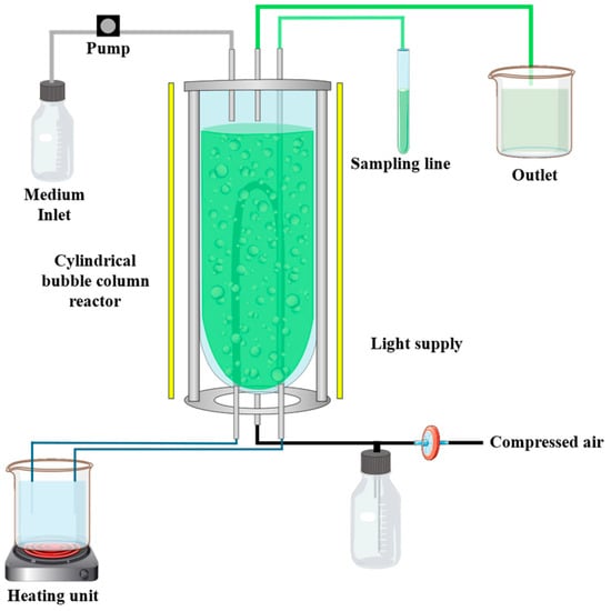 Figure 1) with a volume of approximately 820 mL (diameter = 5 cm) were inoculated with the subculture and an OD of 0.1 (biomass concentration of 0.05 g L