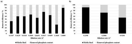 A. platensis can effectively remove phosphate, and phosphate removal was detected during continuous cultivation. Consequently, a limitation of phosphate fixation due to the species can be excluded. However, in the present study, phosphate fixation was observed only in the control medium and continuous cultivation mode, while in the batch cultivation mode no fixation occurred for the tested media compositions. This may be attributed to metabolic changes induced by environmental stress. Araujo et al. [