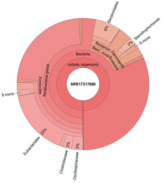 Cells were harvested from the liquid media by centrifugation (3068× g, 30 min) and subsequently subjected to three freeze–thaw cycles to induce cell rupture. The DNA was extracted using a FastDNA™ SPIN Kit for Soil (MP Biomedicals Germany GmbH, 37269 Eschwege, Germany) following the manufacturer’s instructions. The metagenome was characterized using amplicons of the 16Sv4 region of the 16S rRNA gene. Sequencing and data analysis were performed by Microsynth AG (Balgach, Switzerland). Additional details on the procedure can be found in Hummel et al., 2025 [24].
