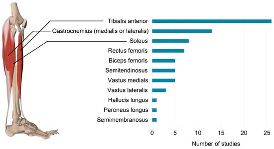 Number of studies conducted for each muscle. © Pharma Intelligence UK Ltd. (London, United Kingdom, trading as Primal Pictures), 2023. www.primalpictures.com www.anatomy.tv (accessed on 27 October 2023).