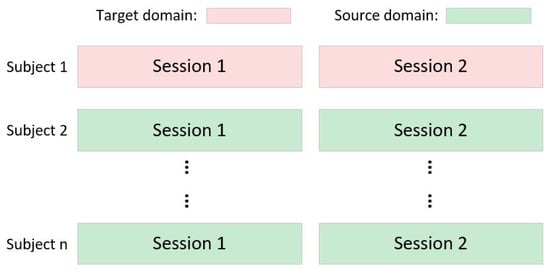 - Hang, W.; Feng, W.; Du, R.; Liang, S.; Chen, Y.; Wang, Q.; Liu, X. Cross-subject EEG signal recognition using deep domain adaptation network. IEEE Access 2019, 7, 128273–128282. [Google Scholar] [CrossRef]