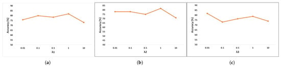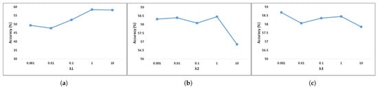 Parameter sensitivity in the loss function (BCIC-IV-2a dataset). (a) depicts , (b) depicts , (c) depicts .