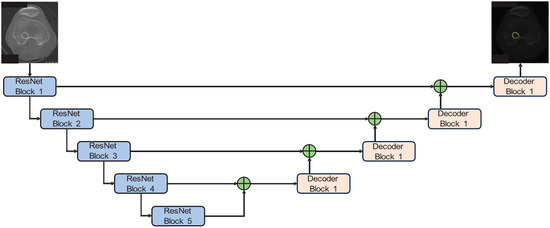 The proposed bone tunnel segmentation system based on deep learning comprises two integral components. Firstly, it leverages a convolutional deep neural network, referred to as the ResNet50-Unet [27], which has been tailored for the segmentation task.