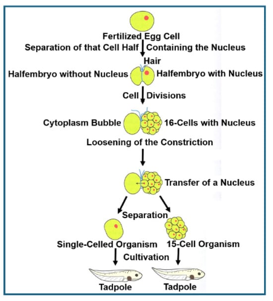 Ernst-Ludwig Winnacker, the German chemist and pioneer of gene technology, used in 1985 for the preface of his book “Gene und Klone” [] the following statement of George Bernhard Shaw []: “You see things, and say why? But I dream things that never were, and I say, why not?”. Apparently, Winnacker shared this dream with Shaw and putatively with other luminaries of early biochemistry, genetics and developmental biology, among them Jacques Loeb [] (“Nothing indicates, however, at present that the artificial production of living matter is beyond the possibilities of science…experimental abiogenesis is the goal of biology”) to up to the very beginnings of genetic engineering, among them Tom Maniatis, Edward F. Fritsch and Joseph Sambrook []. According to the latter, the construction de novo of (micro)organisms, which have not existed on the earth so far, in their labs is feasible in principle and only a matter of time, and critically depends on the nucleotide exchange of more or less extended regions of their genomes, exclusively. Their hope and confidence in the potency of recombinant DNA technology subsequently seemed to have been completely fulfilled, with the development of very sophisticated and advanced methods for the partial or total synthesis of complete genomes (for a review, see Refs. [,]). However, Winnacker and presumably the majority of biochemists, geneticists, and molecular biologists of that and subsequent periods did not take into consideration the role or agency of the history or origin of a given cell in affecting or determining the fate or future of its successor.