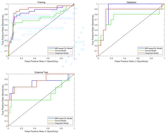 4.3. Performance of the MRI-Based Model, Clinical Model, and Integrated Model