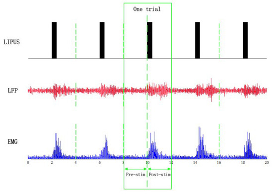 LIPUS and the LFP and EMG signals after preprocessing.