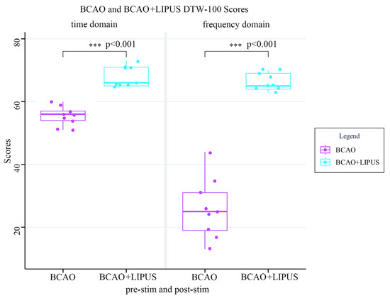 3.5. BCAO Group Frequency-Domain DTW-100 Scores Before and After LIPUS