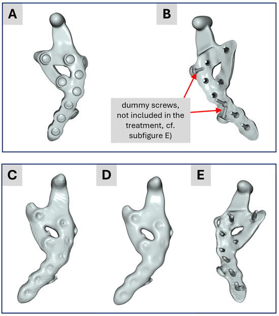 Here, the term “dummy screw” refers to two screws that were planned to be used during the pre-operative consultation with the clinician but could not be placed intraoperatively due to surgical constraints. Since the industrial workflow (based on pre-operative data) includes these screws, whereas the academic workflow (based on post-operative data) generally does not, both variants were simulated for consistency and comparability. This approach enables a thorough comparison of all models via biomechanical FE analysis.