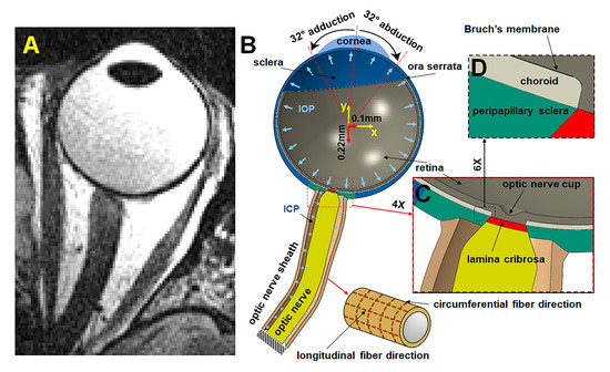 - Grytz, R.; Fazio, M.A.; Girard, M.J.; Libertiaux, V.; Bruno, L.; Gardiner, S.; Girkin, C.A.; Downs, J.C. Material Properties of the Posterior Human Sclera. J. Mech. Behav. Biomed. Mater. 2014, 29, 602–617. [Google Scholar] [CrossRef]