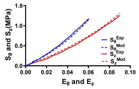 Based on Equation (12), the circumferential and longitudinal components of the second Piola–Kirchhoff stress tensor are