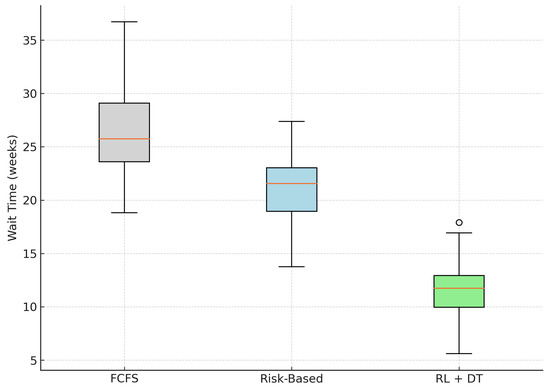According to our simulation results, the RL + Digital Twin model allocates, on average, 47.8% of weekly surgical slots to patients classified as vulnerable, more than double the proportion achieved at the FCFS baseline (22.6%). Even in comparison to the static Risk-Based approach, the proposed methodology yields a relative improvement of more than 50% in equity coverage.