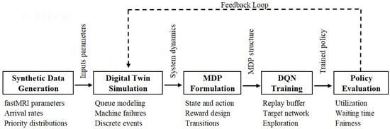 Silva-Aravena, F.; Morales, J.; Jayabalan, M.; Sáez, P. Optimizing MRI Scheduling in High-Complexity Hospitals: A Digital Twin and Reinforcement Learning Approach. Bioengineering 2025, 12, 626. https://doi.org/10.3390/bioengineering12060626