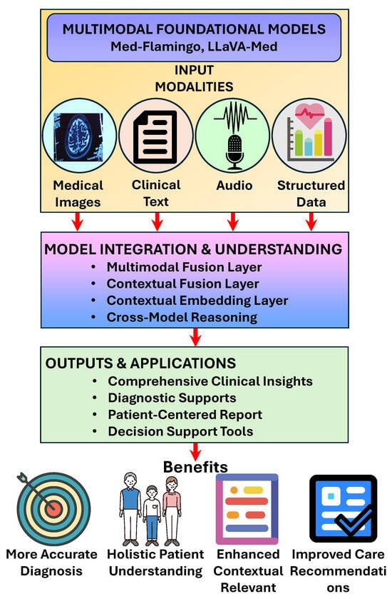 - AlSaad, R.; Abd-Alrazaq, A.; Boughorbel, S.; Ahmed, A.; Renault, M.A.; Damseh, R.; Sheikh, J. Multimodal large language models in health care: Applications, challenges, and future outlook. J. Med. Internet Res. 2024, 26, e59505. [Google Scholar] [CrossRef]