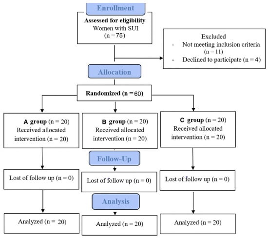Overall, 60 women diagnosed with stress urinary incontinence qualified for the project. Before therapy, each patient underwent a medical history and physical examination. To participate in the study, the patients had to meet strictly defined inclusion and exclusion criteria.
