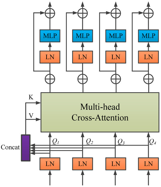 Under the head attention, the output calculation formula after multi-head cross-attention is shown in Equation (11):