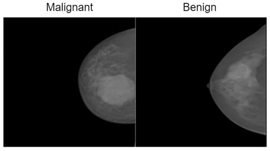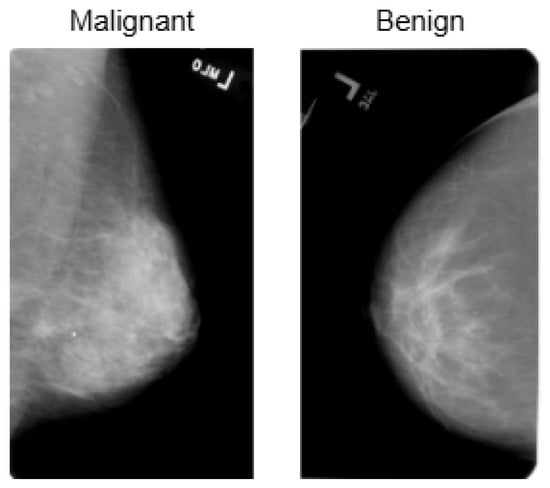Representative samples from the InBreast dataset showing malignant and normal classes.