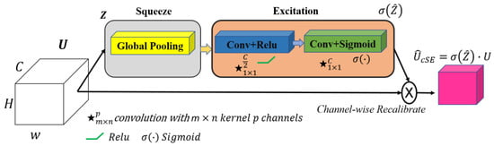 - Hu, J.; Shen, L.; Sun, G. Squeeze-and-Excitation Networks. In Proceedings of the IEEE Conference on Computer Vision and Pattern Recognition (CVPR), Salt Lake City, UT, USA, 18–23 June 2018; pp. 7132–7141. [Google Scholar] [CrossRef]