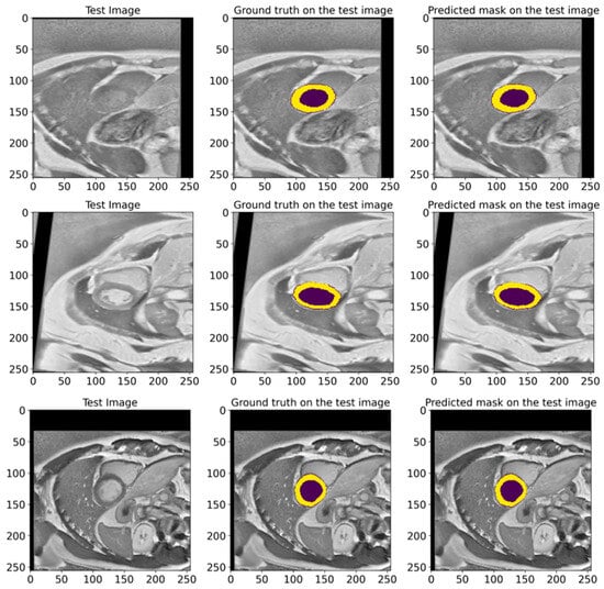 In Table 1, the high rates of the MIoU and other metrics verify the ability of our model to segment cardiac structures in MRI images precisely. The outcomes obtained demonstrate that the proposed model is applicable for use in clinical practice to improve diagnostic accuracy. Additionally, such findings highlight the potential of the DNN in the segmentation of medical images, where the high precision and robustness of segmentation models can significantly affect the quality of medical treatments. The successful implementation of this model could lead to significant enhancements in the early diagnosis and monitoring of cardiovascular illnesses as well as improve the treatment effectiveness and patient outcomes.