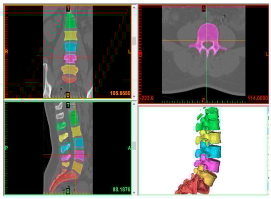 - Kang, S.; Park, C.-H.; Jung, H.; Lee, S.; Min, Y.-S.; Kim, C.-H.; Cho, M.; Jung, G.-H.; Kim, D.-H.; Kim, K.-T.; et al. Analysis of the physiological load on lumbar vertebrae in patients with osteoporosis: A finite-element study. Sci. Rep. 2022, 12, 11001. [Google Scholar] [CrossRef] [PubMed]