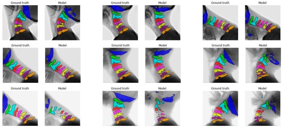 - Shim, J.H.; Kim, W.S.; Kim, K.G.; Yee, G.T.; Kim, Y.J.; Jeong, T.S. Evaluation of U-Net models in automated cervical spine and cranial bone segmentation using X-ray images for traumatic atlanto-occipital dislocation diagnosis. Sci. Rep. 2022, 12, 21438. [Google Scholar] [CrossRef]
