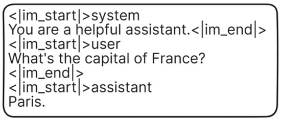 For MISTRAL, we employed the ChatML format for conversation-style fine-tuning, also leveraging Open Assistant conversations in the ShareGPT style. ChatML structures multi-turn interactions as shown in Figure 4.