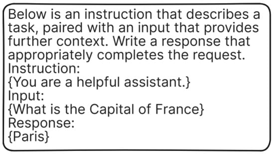 Every record in the dataset was converted to the form suitable for training of the models, which are capable of learning from question–answer pair data. Subsequently, the dataset was restructured as well. For the case of doctor–patient interactions, the question was set as the patient’s inquiry and the response was assigned as the respective answer. The data was framed in the format of a prompt template containing instructions, inputs, and outputs based on the Alpaca dataset format. In order to receive correct text generation at inference, an End of Sequence (EOS) token was added to all examples.