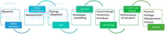 A flowchart of the steps in the development, fabrication, and experimental testing of the prosthesis.