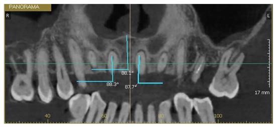 Patients were excluded if they presented with severely compromised incisors, defined as teeth with fractures extending below the cemento-enamel junction, extensive carious lesions causing structural loss, root resorption visible on CBCT, or prosthetic restorations and large fillings that could interfere with the dental angular measurements. Patients with stage 3 or 4 periodontal disease, according to the current classification of EFP, were excluded by this study.