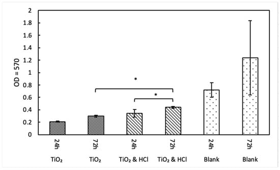 | TiO2 and HCl | 921.2 ± 143.0 * | 8.1 ± 2.8 | 1.2 ± 4.1 * | 10.5 ± 16.2 | 1.315 ± 165.0 * |