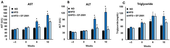 3.3. Effect of EF-2001 on Organ Weight in HFD-Induced Obese Mice