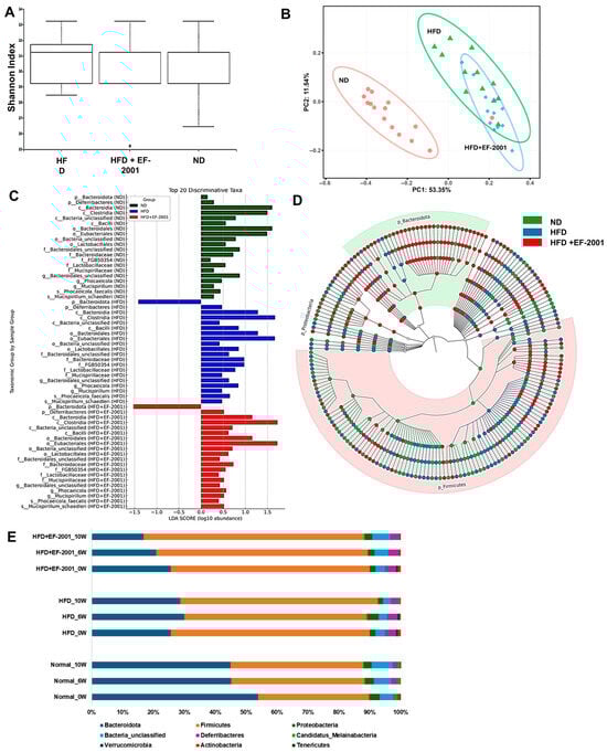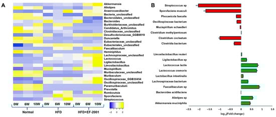 3.9. Species-Level Analysis: HFD vs. HFD + EF-2001