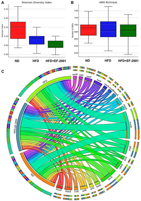 APA StyleManoharan, R. K., Han, K.-I., Shin, H.-D., Lee, Y., Baek, S., Moon, E., Park, Y. B., Cho, J., & Srinivasan, S. (2025). Modulation of Gut Microbiota and Antibiotic Resistance Genes by Heat-Killed Enterococcus faecalis EF-2001 in High-Fat Diet-Induced Obesity Mice: A Shotgun Metagenomics Study. Bioengineering, 12(7), 741. https://doi.org/10.3390/bioengineering12070741