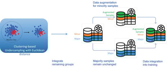 The original dataset exhibited pronounced class imbalance, with KD cases substantially underrepresented at an approximate ratio of 1:64. Training classification models directly on such imbalanced data would likely skew predictions toward the majority class, impairing the model’s ability to identify positive cases. To mitigate this issue, we developed a two-stage data processing pipeline that integrates CBU with augmentation data generation. The impact of various strategy combinations was systematically evaluated to optimize model performance.