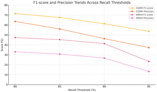 To ensure robustness across varying clinical thresholds, model evaluation was conducted at multiple recall targets (80%, 85%, 90%, and 95%), enabling a comprehensive analysis of the proposed framework’s generalizability and stability.
