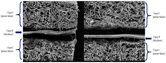 The final tri-layered full-thickness artificial skin included two cell scaffolds with a basement membrane between them (Figure 3). Scanning electron microscopy (SEM) was utilized to examine the structural characteristics of the basement membrane and the final structural features of the tri-layered full-thickness artificial skin.