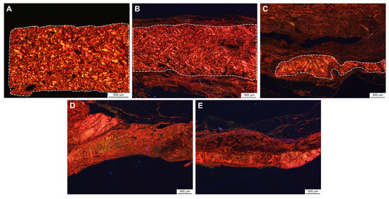 - Rich, L.; Whittaker, P. Collagen and picrosirius red staining: Polarized light assessment of fibrillar hue and spatial distribution. Braz. J. Morphol. Sci. 2005, 22, 97–104. [Google Scholar]