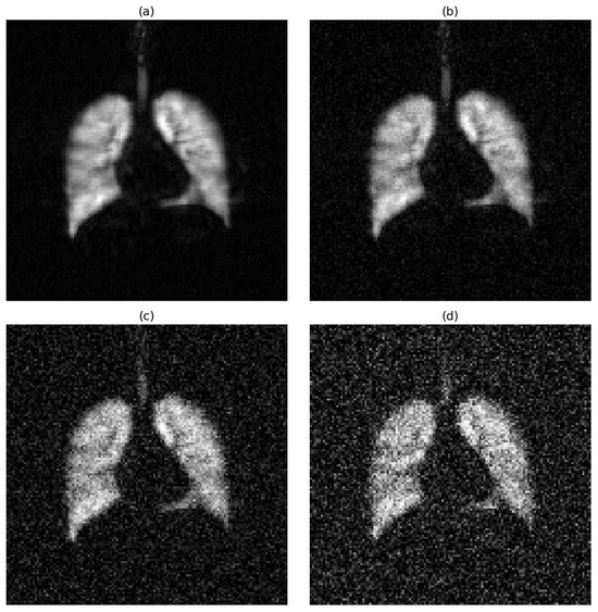 When focusing on hyperpolarized gas MRI, which is commonly used for lung imaging, additional challenges arise due to the nature of the technique. Since repeated scans are often impractical, accounting for and mitigating the impact of noise during the initial acquisition becomes essential for ensuring diagnostic quality and accurate analysis [