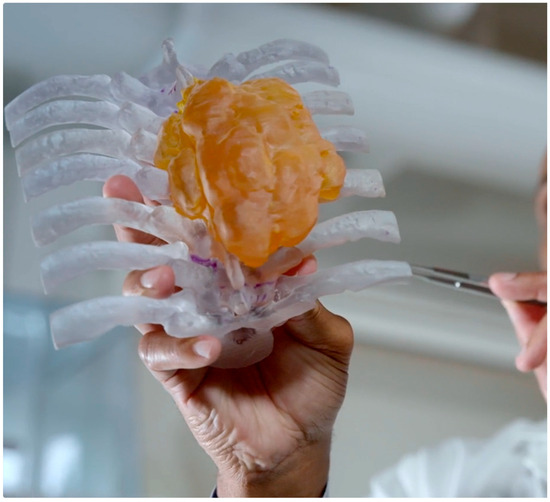 7]. The process includes creating a digital model using dedicated software to outline diseased and normal anatomy. The resulting computer file contains the instructions that will allow the 3D printer to make the digital model into a physical model. Specific to surgical oncology, patient imaging results such as CT or MRI scans are used as the source of data to produce a physical three-dimensional model of the cancer surgical site to assist the surgeon in preparing for surgery. Computer-aided design (CAD) software can also be used to help the surgeon designate or prescribe a surgical plan and visualize it onto the anatomy already outlined, thus providing an opportunity for rehearsal. These hand-held models (shown in