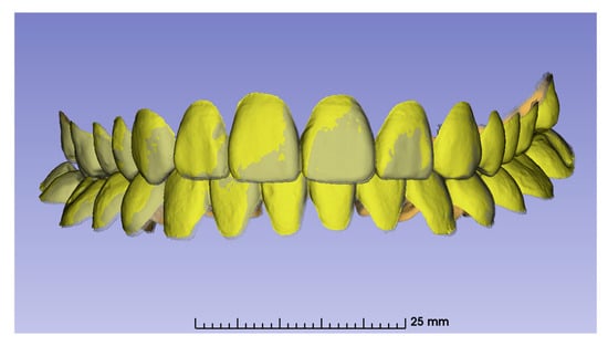 - Henninger, E.; Vasilakos, G.; Halazonetis, D.; Gkantidis, N. The effect of regular dental cast artifacts on the 3D superimposition of serial digital maxillary dental models. Sci. Rep. 2019, 9, 10501. [Google Scholar] [CrossRef]