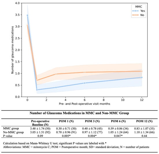 Figure 2). The MMC group required significantly fewer medications at 1, 3, and 6 months after AGV implantation (