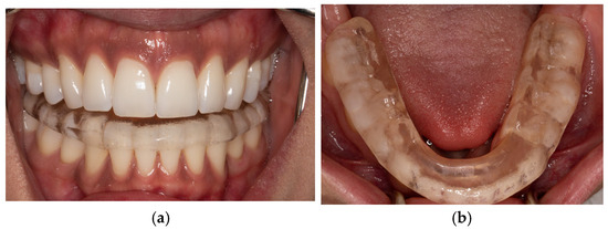 - Albagieh, H.; Alomran, I.; Binakresh, A.; Alhatarisha, N.; Almeteb, M.; Khalaf, Y.; Alqublan, A.; Alqahatany, M. Occlusal splints-types and effectiveness in temporomandibular disorder management. Saudi Dent. J. 2023, 35, 70–79. [Google Scholar] [CrossRef]
