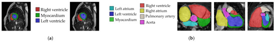 - Payer, C.; Štern, D.; Bischof, H.; Urschler, M. Multi-label Whole Heart Segmentation Using CNNs and Anatomical Label Configurations. In Proceedings of the Statistical Atlases and Computational Models of the Heart. ACDC and MMWHS Challenges, Quebec City, QC, Canada, 10–14 September 2018; Springer International Publishing: Cham, Switzerland, 2018; pp. 190–198. [Google Scholar] [CrossRef]
