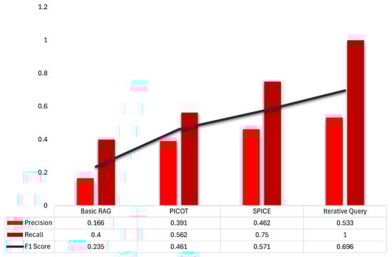 - Dual evaluation: Clinician-facing metrics (accuracy and relevance) are paired with information-retrieval metrics (precision, recall, and F1) to link clinical utility with retrieval quality.