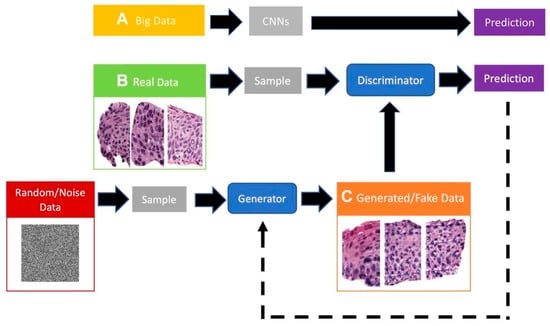 16]. To improve accessibility for non-expert readers (e.g., clinicians), we retain a compact schematic of a GAN to visually anchor the concept (