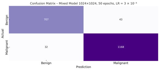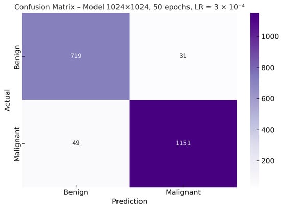 Figure 7). This visualization allows a more direct observation of the classifier’s behavior in terms of correct and incorrect predictions between the benign and malignant classes.