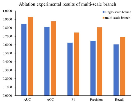 The experimental results indicate that the multi-scale branch structure not only effectively avoids the scale bias problem that may be caused by a single branch but also gives full play to the complementary advantages of features at different time scales. This structure is irreplaceable in ECG tasks and an indispensable key element for improving model performance.